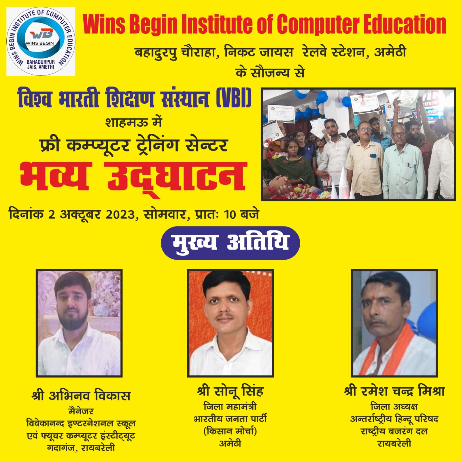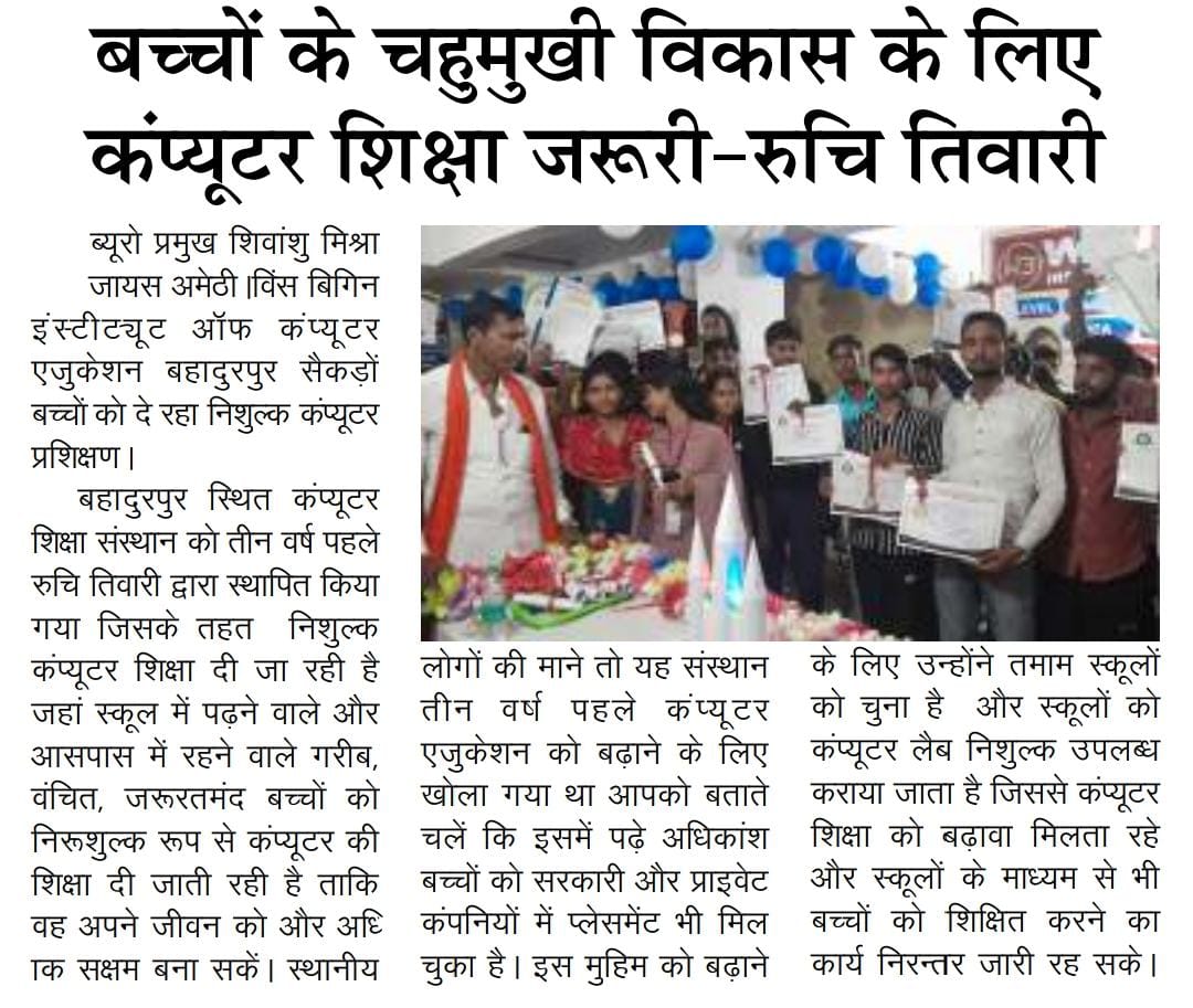 free computer training Centre Vishwa Bhaarti Institute Shahmau Amethi